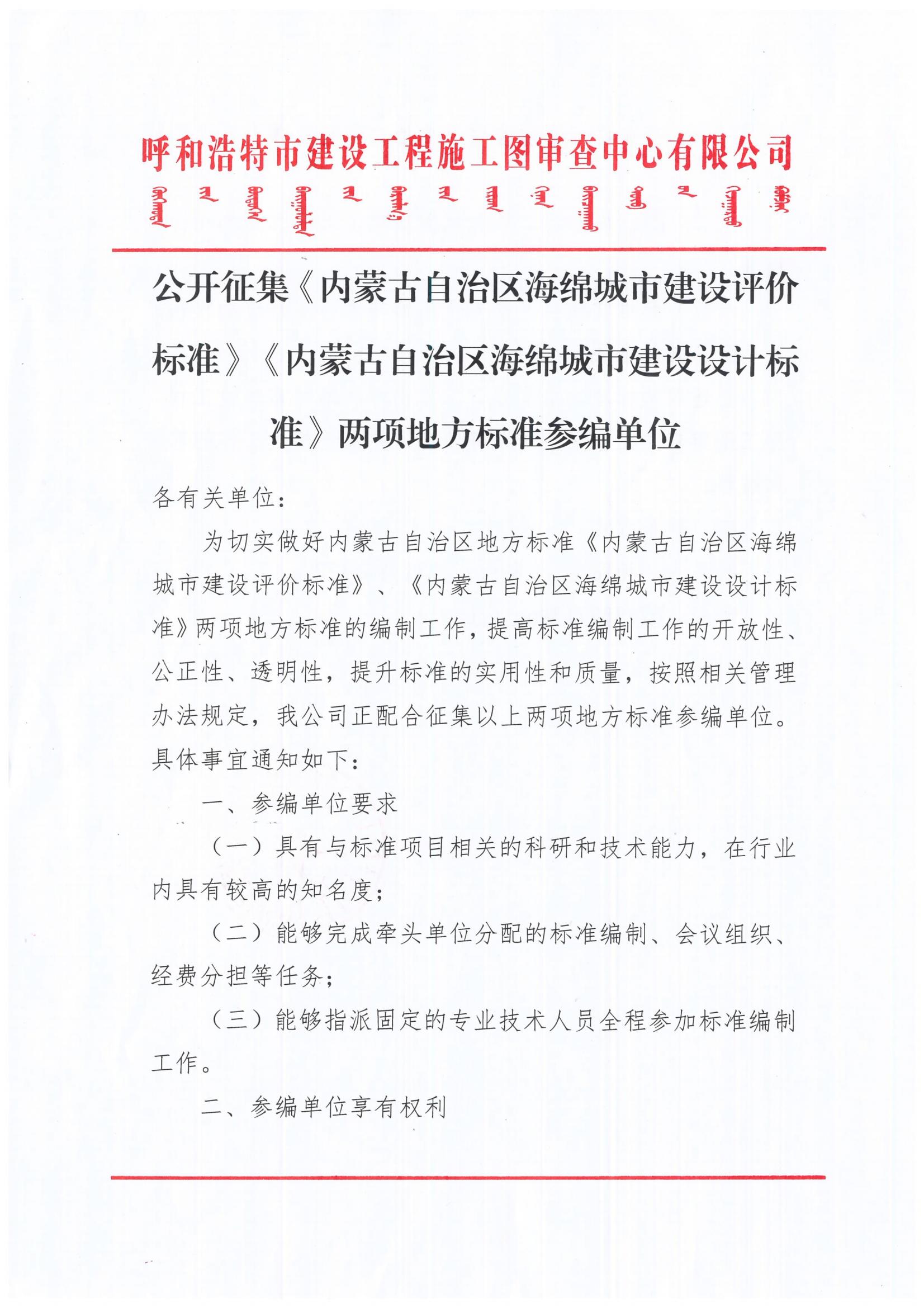 公開征集《內蒙古自治區海綿城市建設評價標準》 《內蒙古自治區海綿城市建設設計標準》 兩項地方標準參編單位